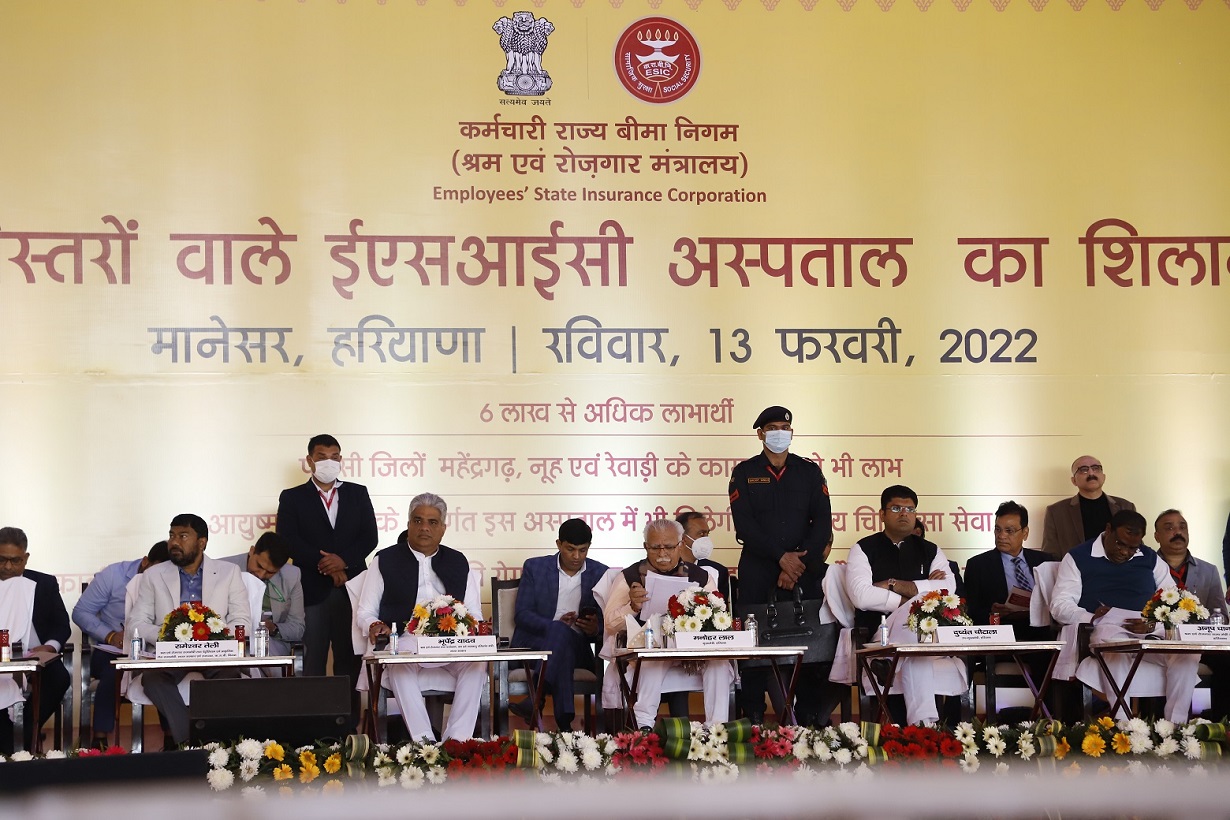 Foundation stone laying of 500 bedded hospital at Manesar on 13.02.2022